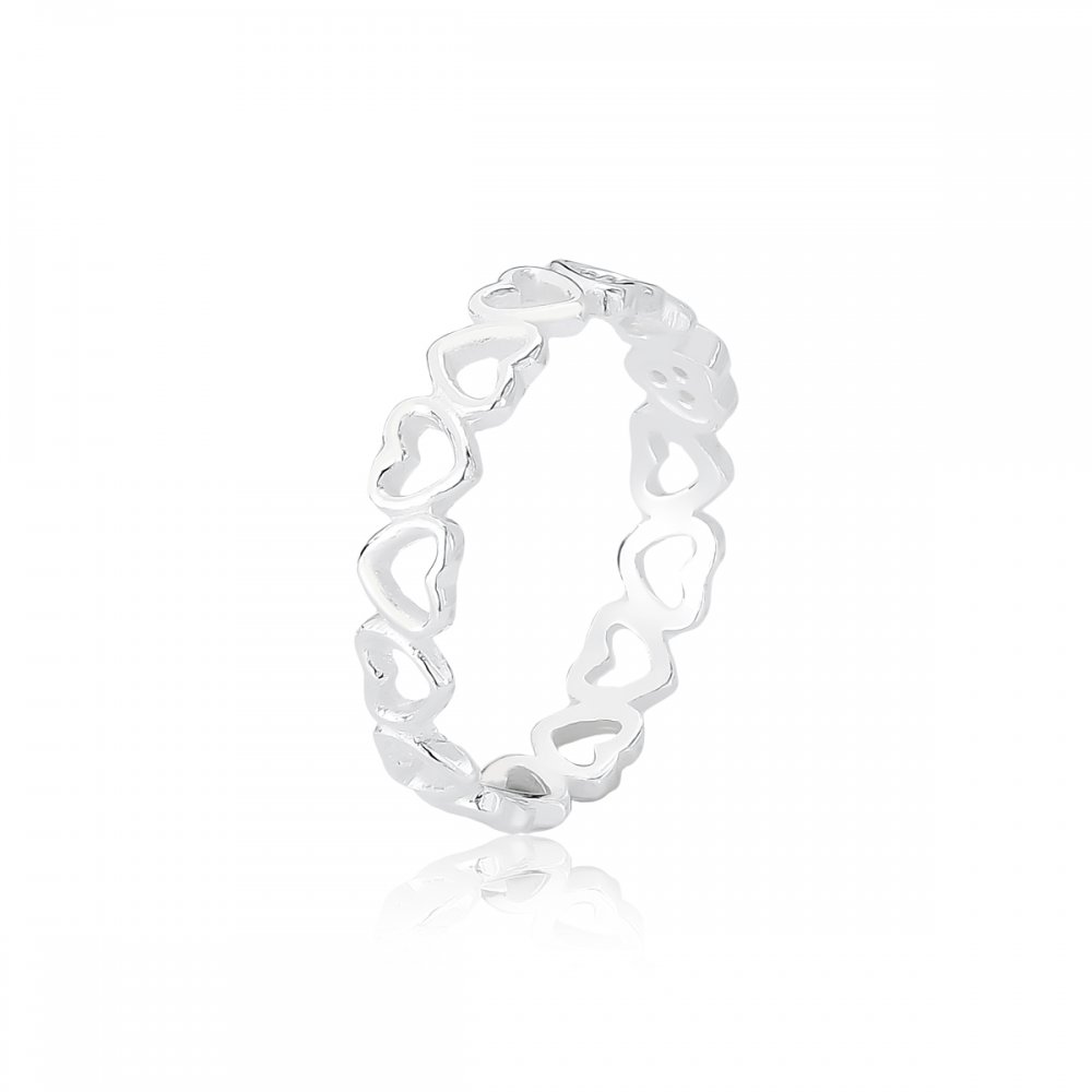 Nosso anel de corações vazados em prata 925 é uma joia delicada e romântica. Com seu design encantador, este anel é perfeito para expressar seu amor e estilo de forma sutil e elegante.
