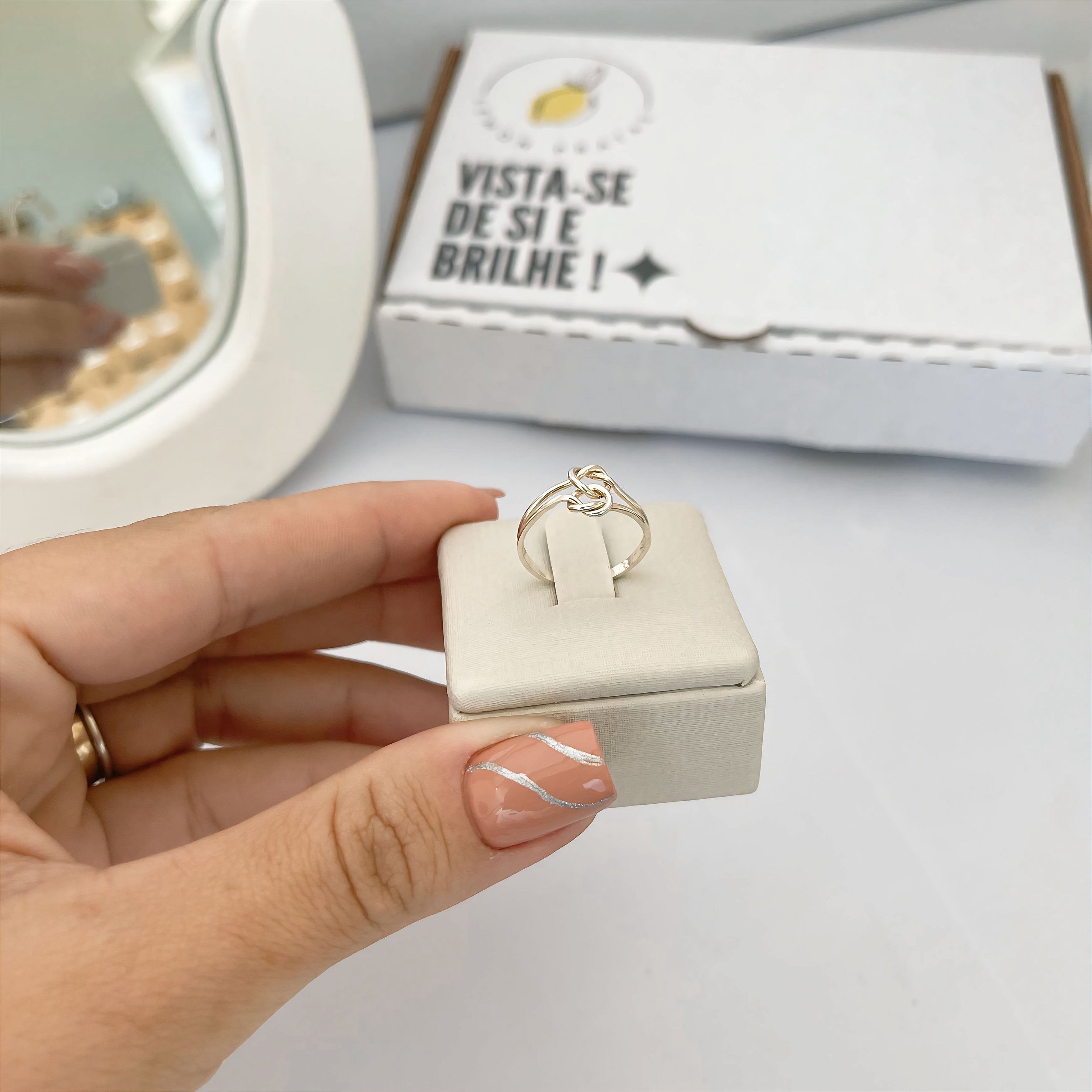 Anel elegante em prata 925, com um design sofisticado de dois nós entrelaçados. Ideal para quem aprecia um estilo minimalista com um toque simbólico, representando união e o laço entre dois elementos. Perfeito para uso diário ou ocasiões especiais.