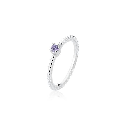Anel Solitário Aro de Bolinha e Pedra Lilás