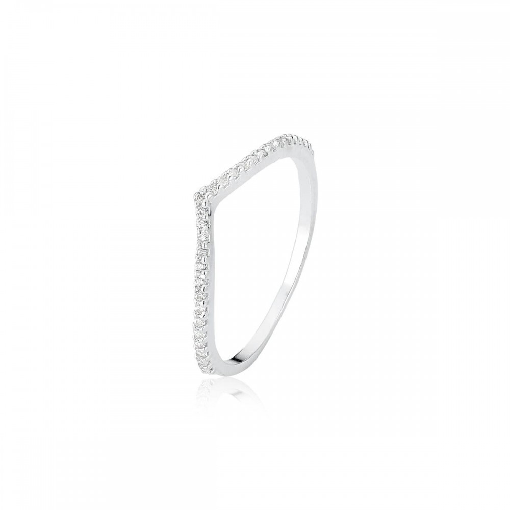 O anel em prata 925 em V cravejado é uma obra prima de elegância e estilo contemporâneo. Com sua forma distinta em V e pedras cravejadas, ele exala sofisticação e charme. Use este anel para elevar instantaneamente seu visual, seja para uma ocasião especial ou para o dia-a-dia.