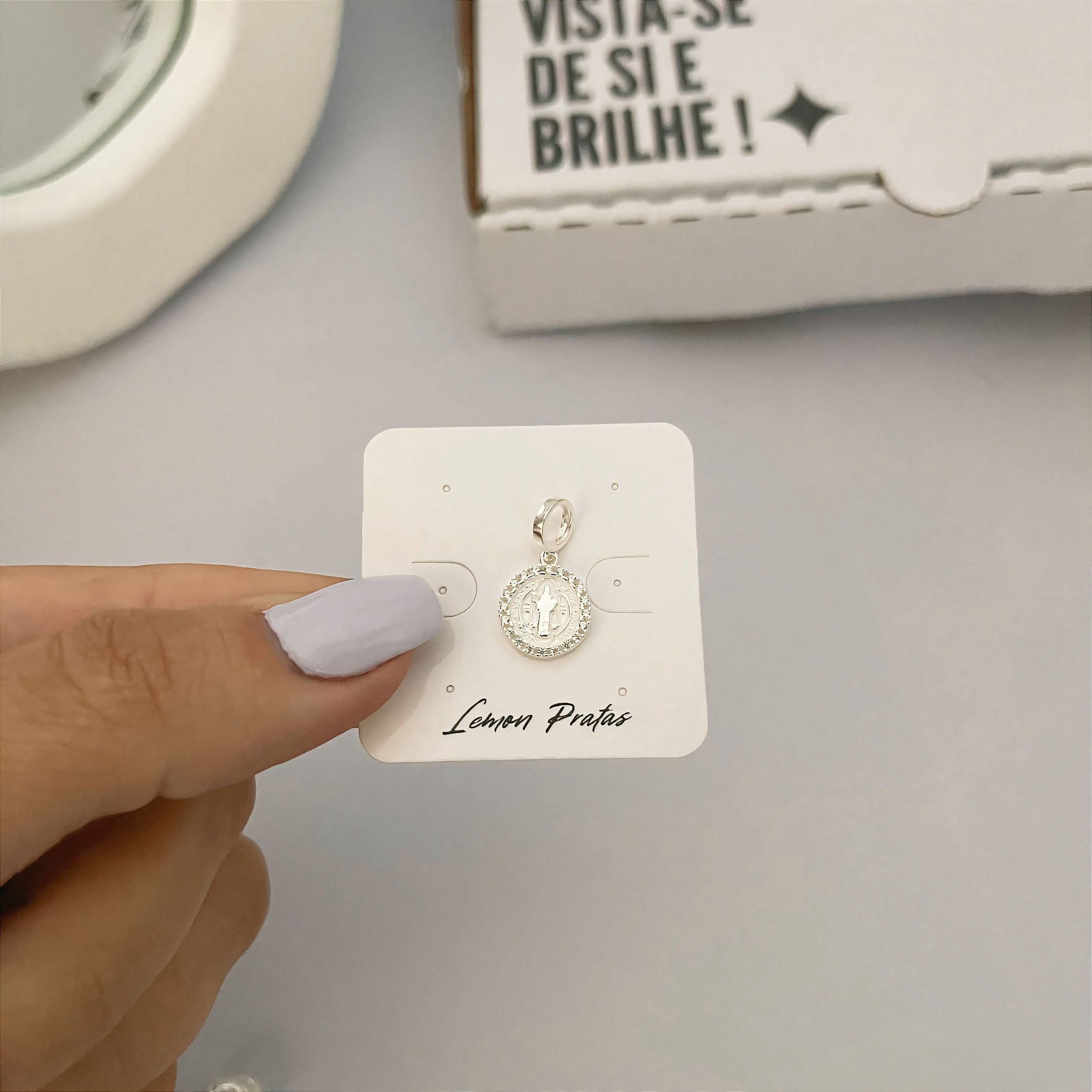 Feito em prata 925, este berloque São Bento cravejado é um símbolo de proteção e fé que pode ser usado como lembrete constante da presença divina em nossas vidas.