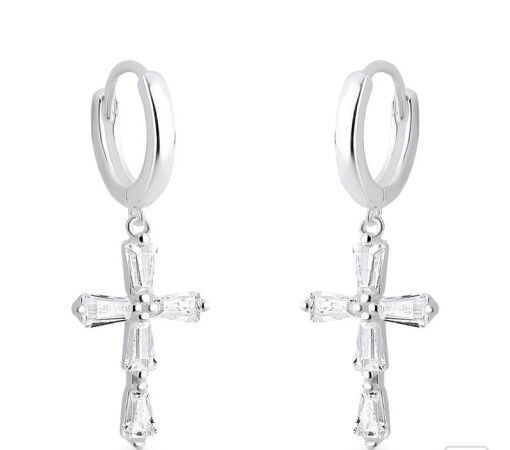 Argola click pingente cruz cristal, tem um design sofisticado e reluzente, criando um visual elegante.