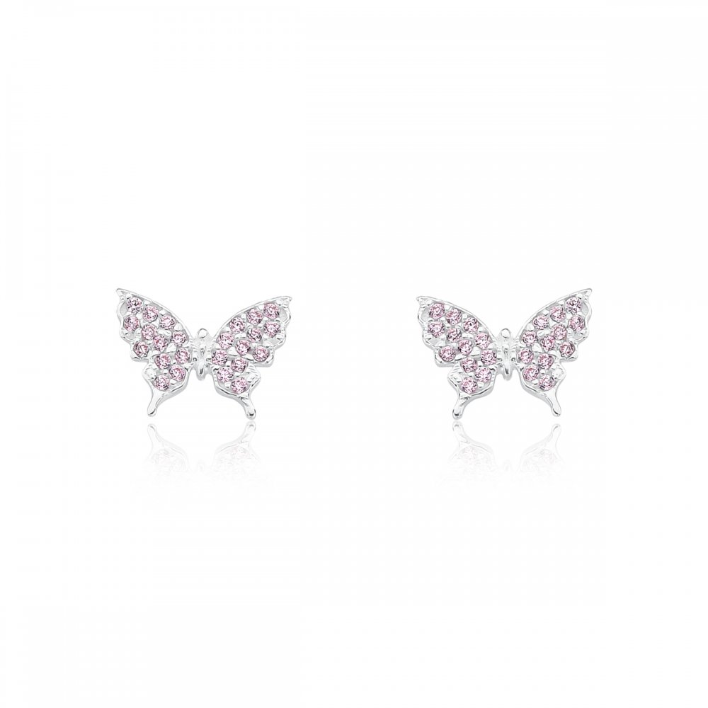 Este brinco captura a beleza graciosa da natureza com um design de borboleta adornando com 24 pequenas pedras em micro zircônias rosa bebê, que adicionam um brilho sutil e sofisticado.