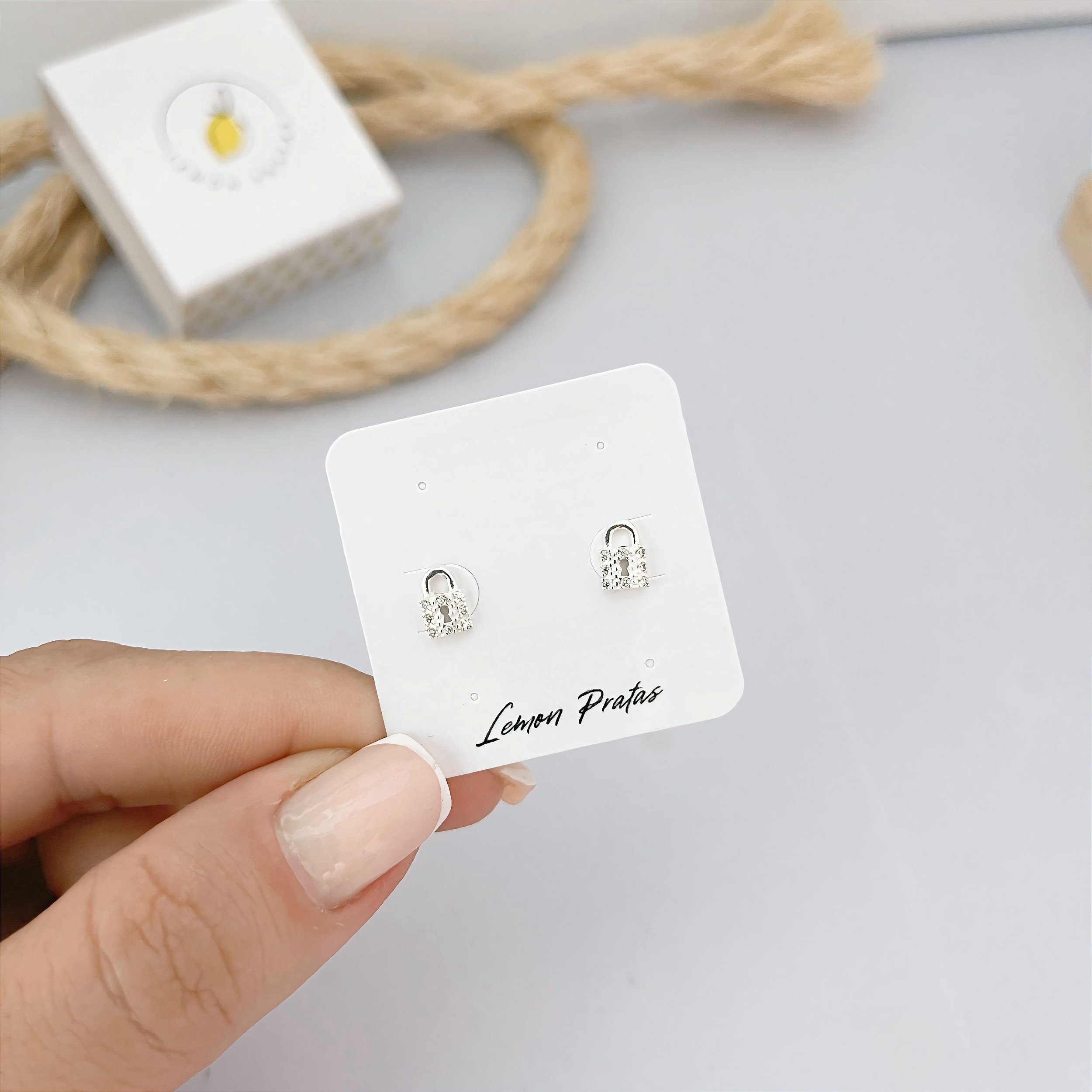 O brinco tem um formato de um pequeno cadeado, simbolizando segurança, proteção ou um vínculo especial. O design compacto e detalhado é moderno e versátil, ideal para quem busca um acessório que combine um estilo urbano e sofisticado com um significado profundo.