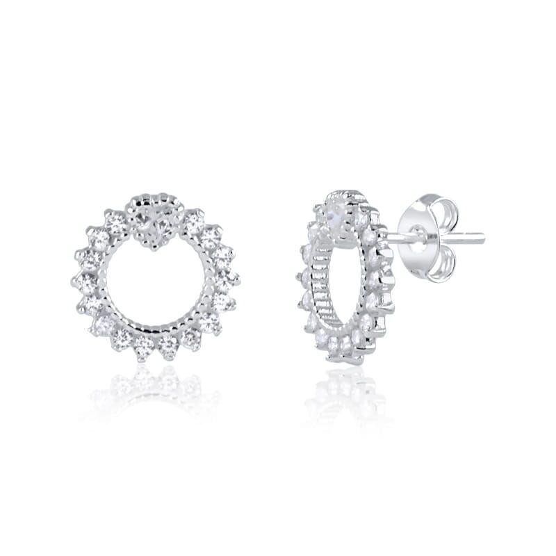 Brinco círculo cravejado com micro zircônias e possuem uma pedra de coração em cima, trazendo um toque de romance e charme à joia. Um acessório que transmite elegância e glamour, com um toque de doçura em seus looks.