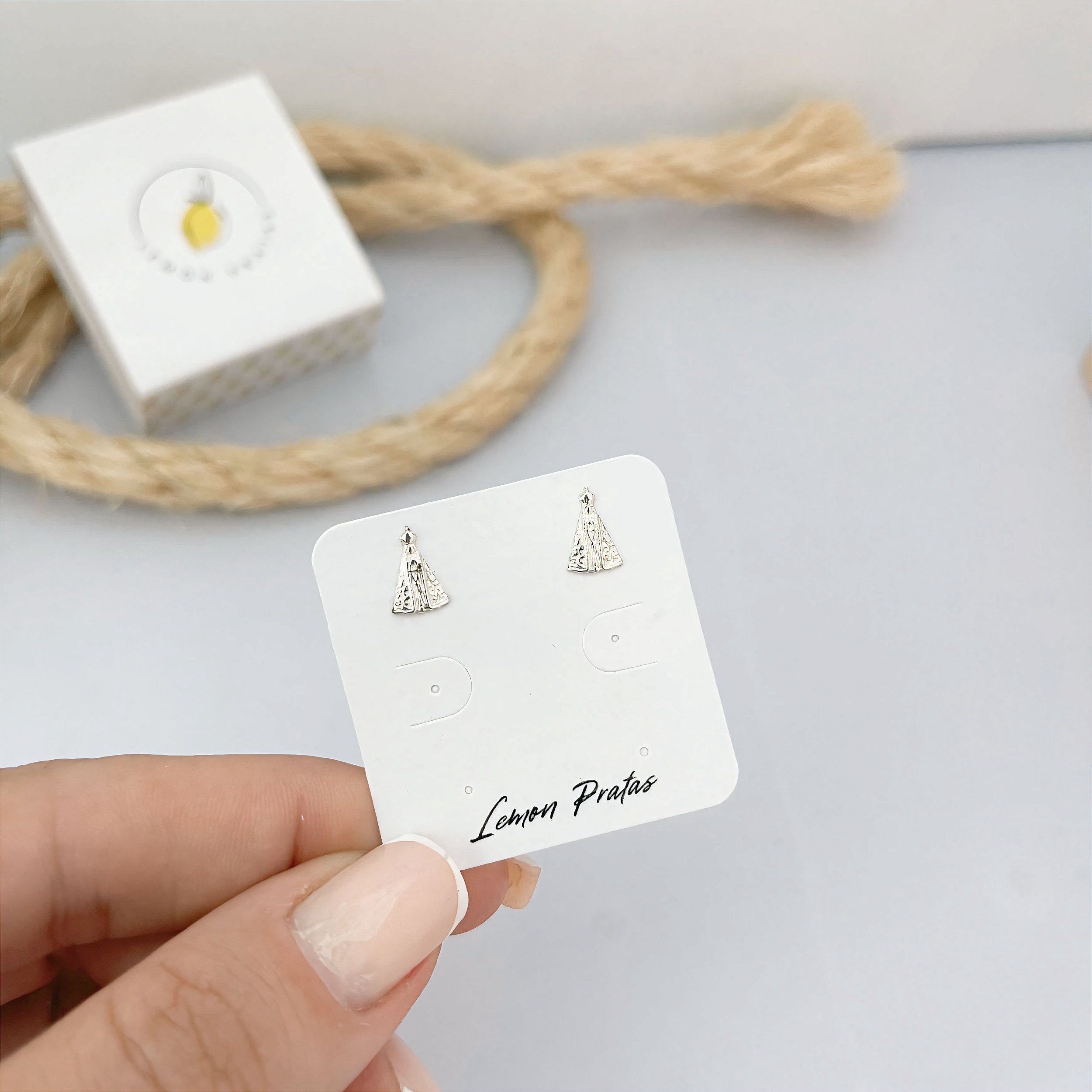O brinco é cuidadosamente moldado para representar a imagem de Nossa Senhora Aparecida, padroeira do Brasil, com seu manto e coroa característicos. Este brinco é perfeito para quem deseja carregar consigo um símbolo de proteção e espiritualidade, seja no dia a dia ou ocasiões especiais.