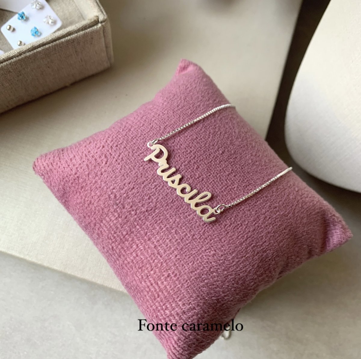 Colar nome, fonte caramelo é uma joia no qual você pode personalizar com até 13 caracteres.