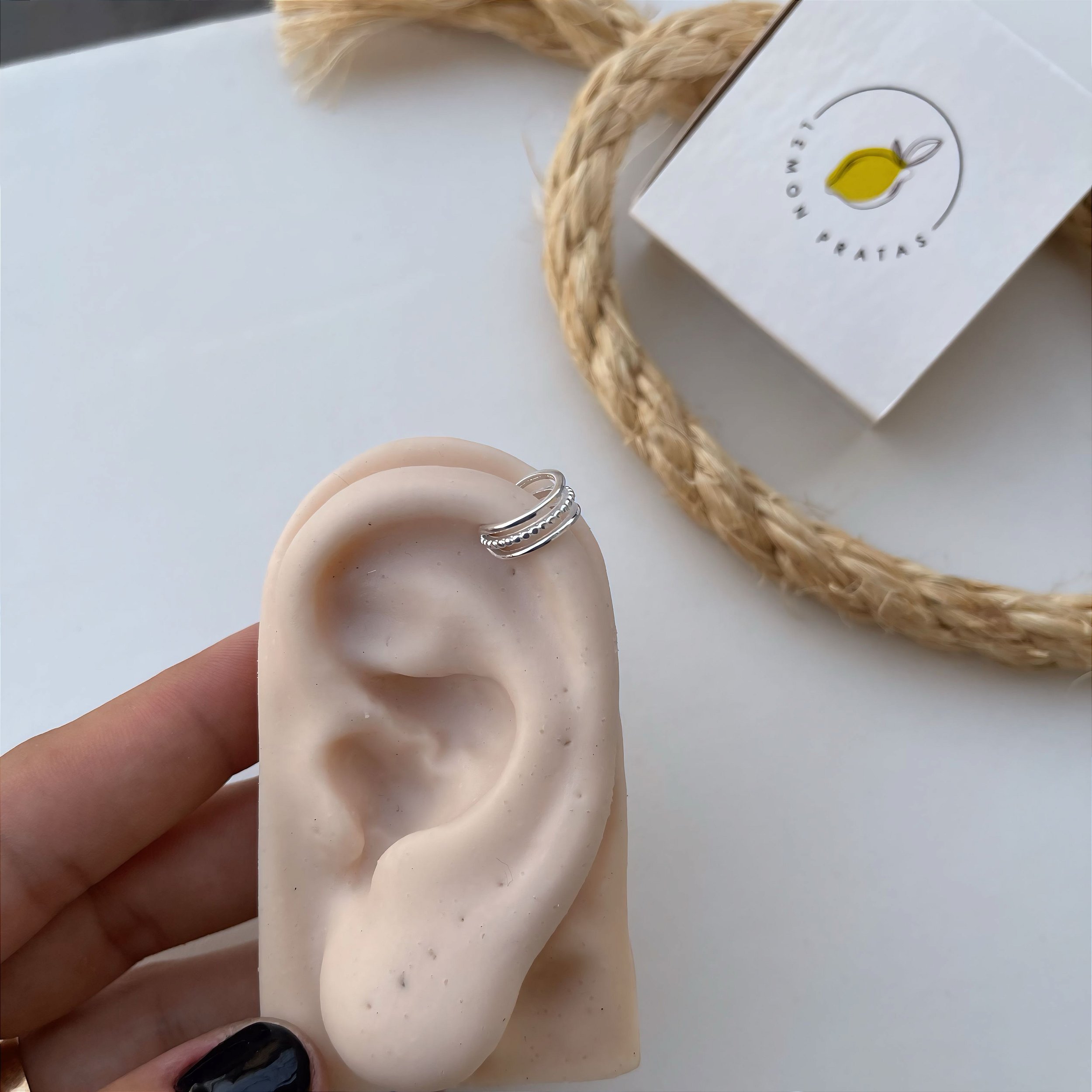 Piercing fake em prata 925, 3 fios projetado para um ajuste perfeito em cada posição da orelha. É uma peça que você tem um conforto e estilo ao usar.