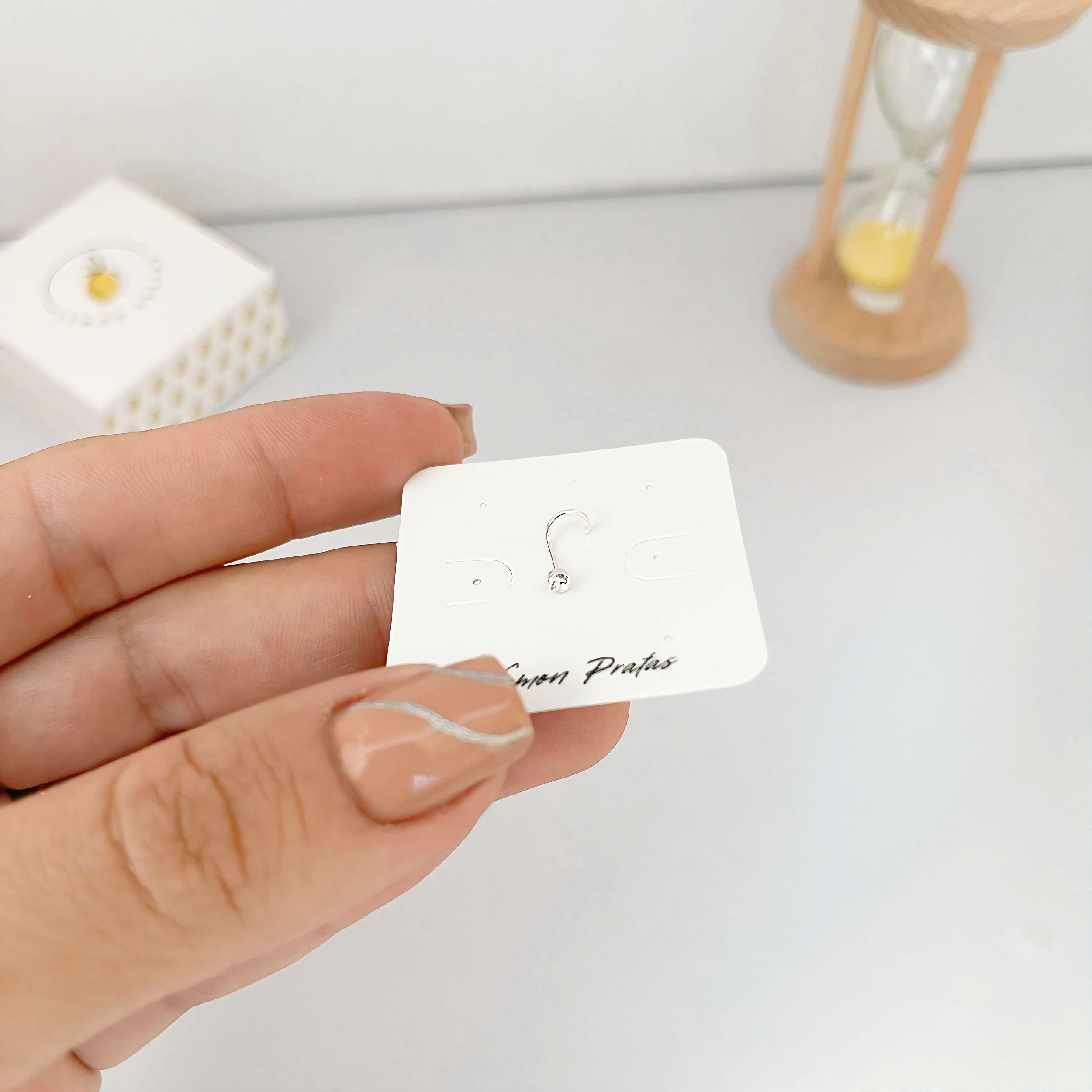 Piercing de nariz em Prata 925, em formato de gancho acompanhado com uma zircônia cristal. Um acessório elegante e versátil.