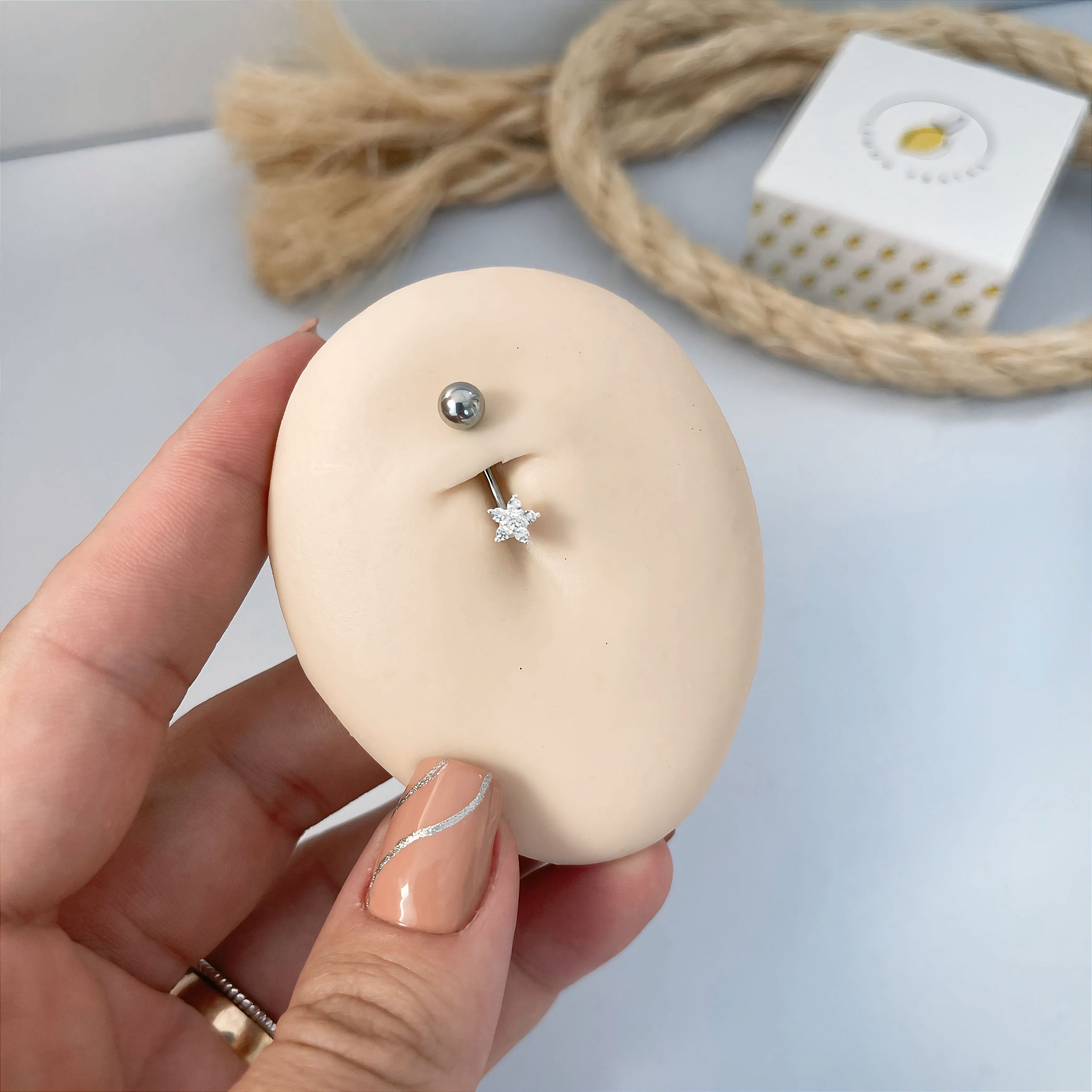 Piercing de umbigo flor é um piercing super delicado e minimalista. Composto por seis pedras de zircônia, formando uma flor,dando um charme e delicadeza incrível.