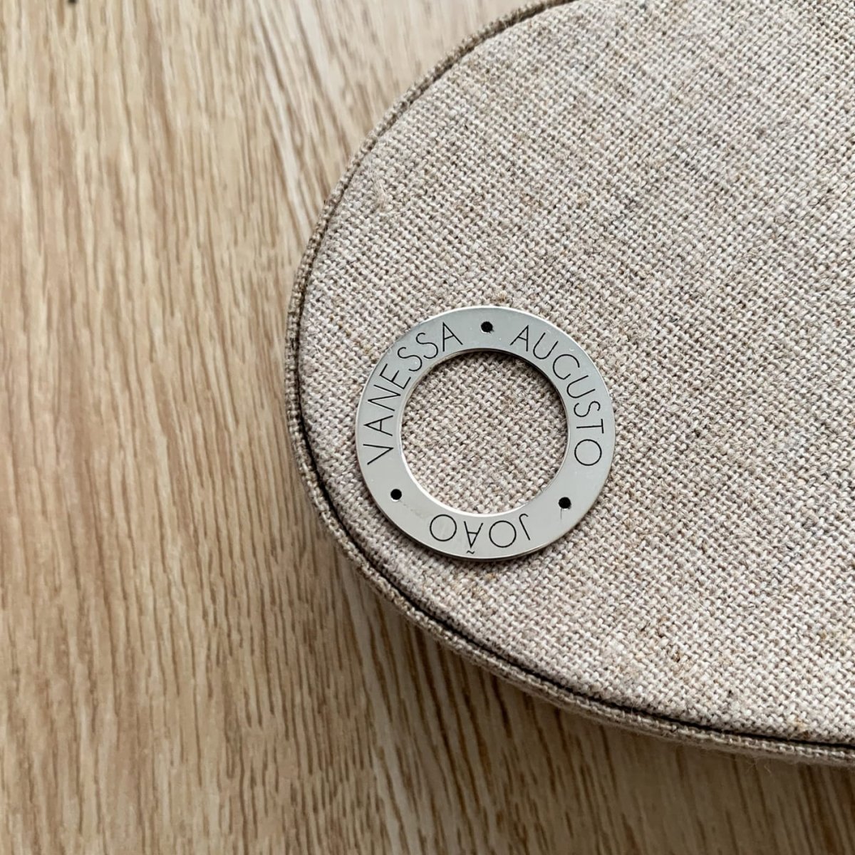 Pingente Elo com nomes é uma joia no qual você pode personalizar com até 40 caracteres.