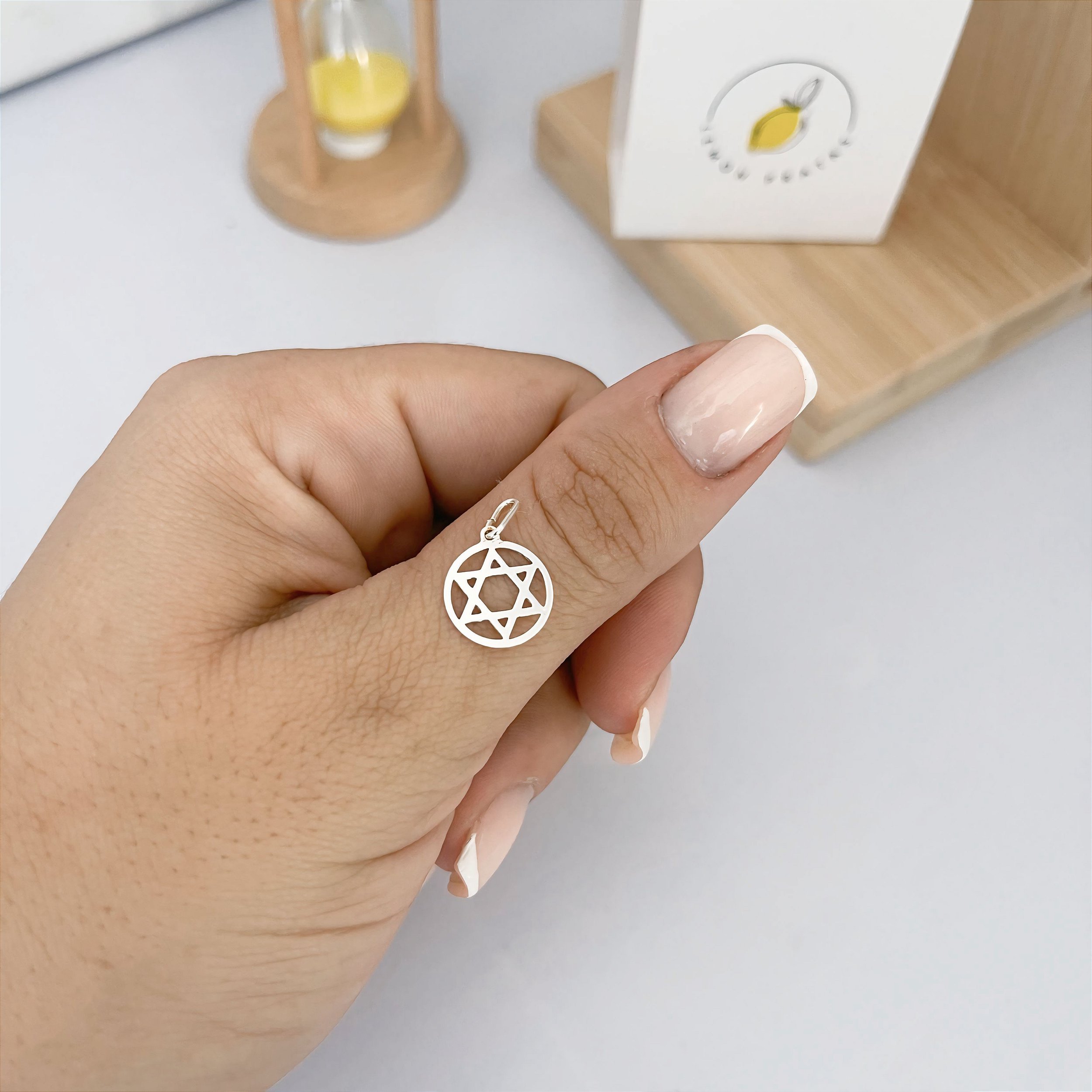 Este pingente apresenta a emblemática Estrela de Davi, um símbolo sagrado do Judaísmo, em um design vazado que adiciona um toque de delicadeza e leveza à joia. Com seus seis pontos entrelaçados, representa a conexão entre o divino e o terreno, a unidade e a dualidade, criando uma sensação de harmonia e equilíbrio.