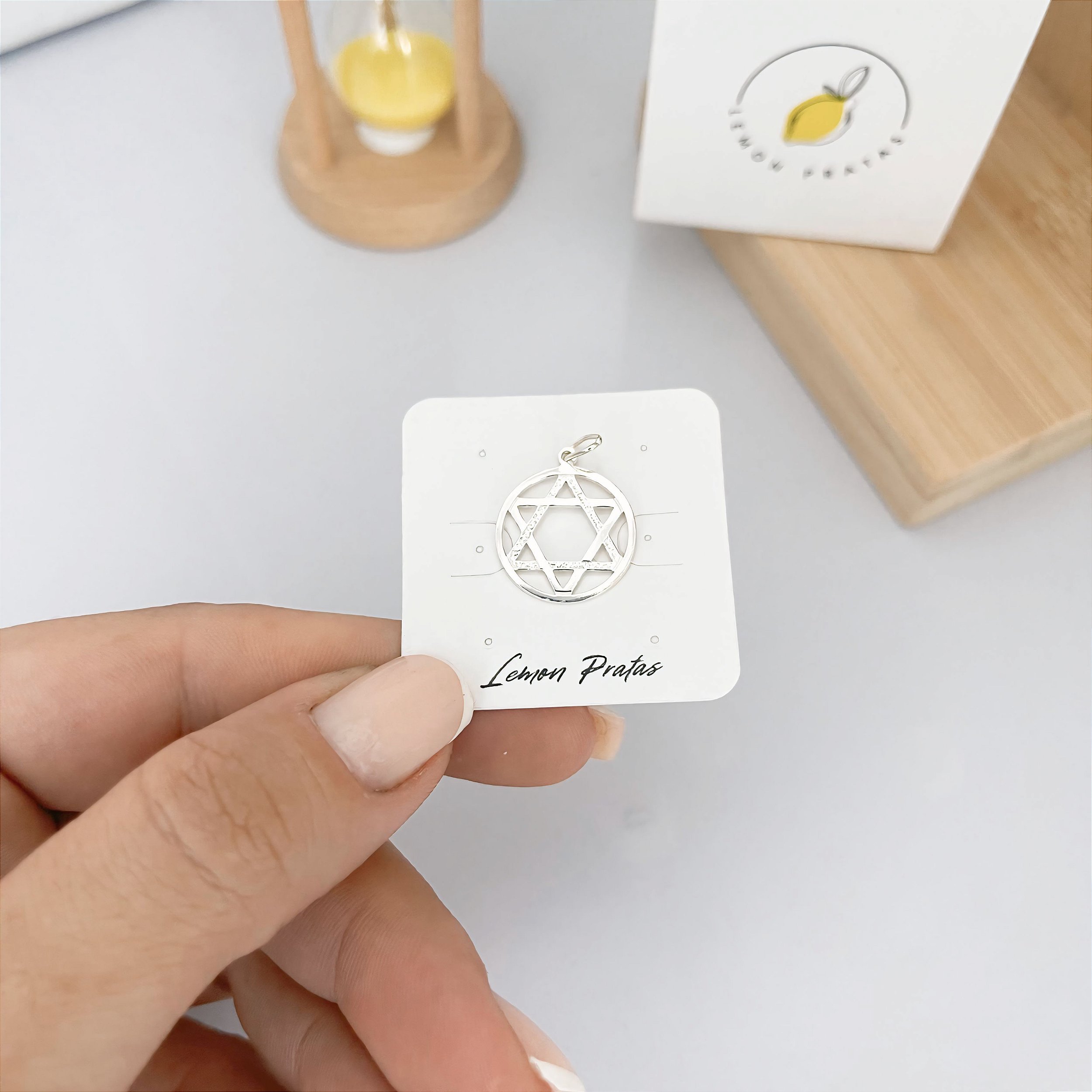 Este pingente apresenta a emblemática Estrela de Davi, um símbolo sagrado do Judaísmo, em um design vazado que adiciona um toque de delicadeza e leveza à joia. Com seus seis pontos entrelaçados, representa a conexão entre o divino e o terreno, a unidade e a dualidade, criando uma sensação de harmonia e equilíbrio.