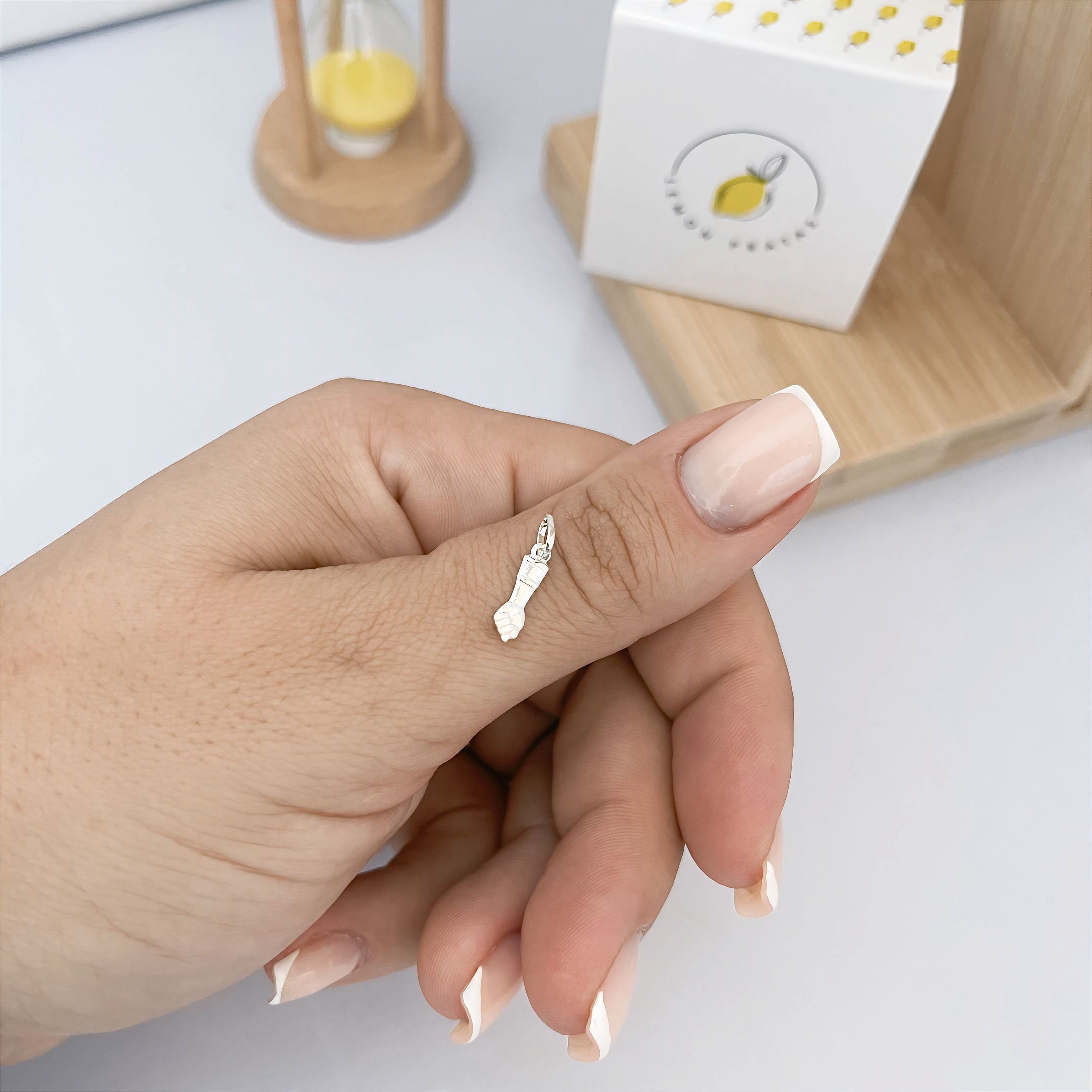 Este pingente de figa em prata geralmente apresenta o formato de uma mão fechada com o polegar passando entre o indicador e o dedo médio. Este símbolo é tradicionalmente associado à proteção contra o mau-olhado e energias negativas, sendo muito popular em diversas culturas, especialmente no Brasil.