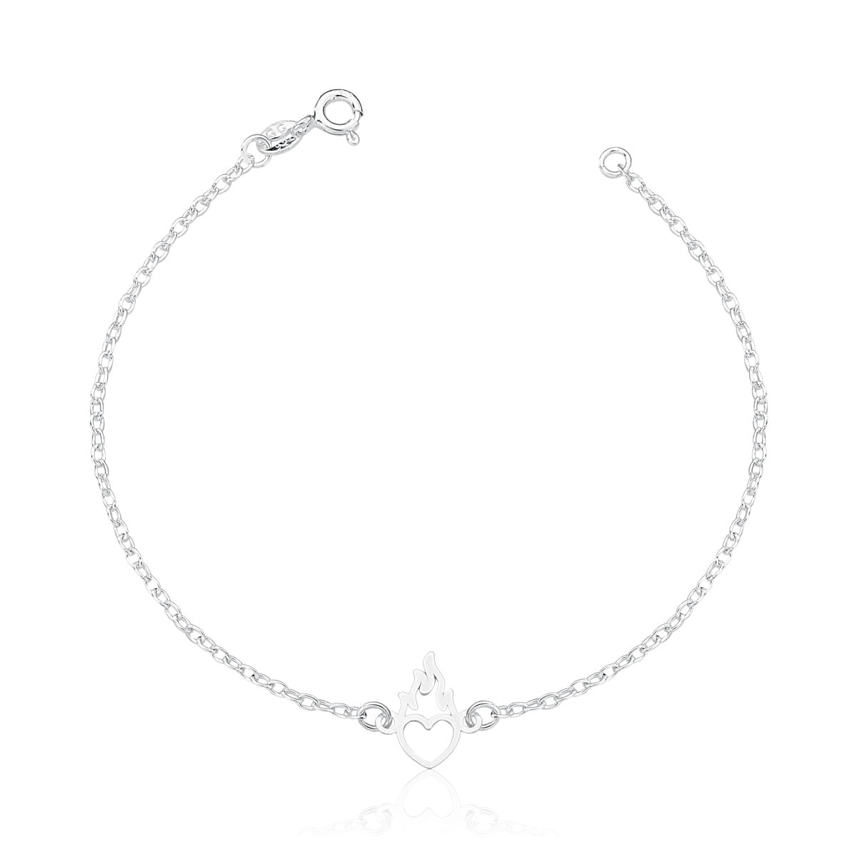 Essa pulseira encantadora combina o charme sutil de um coração com fogo centralizado nos elos,