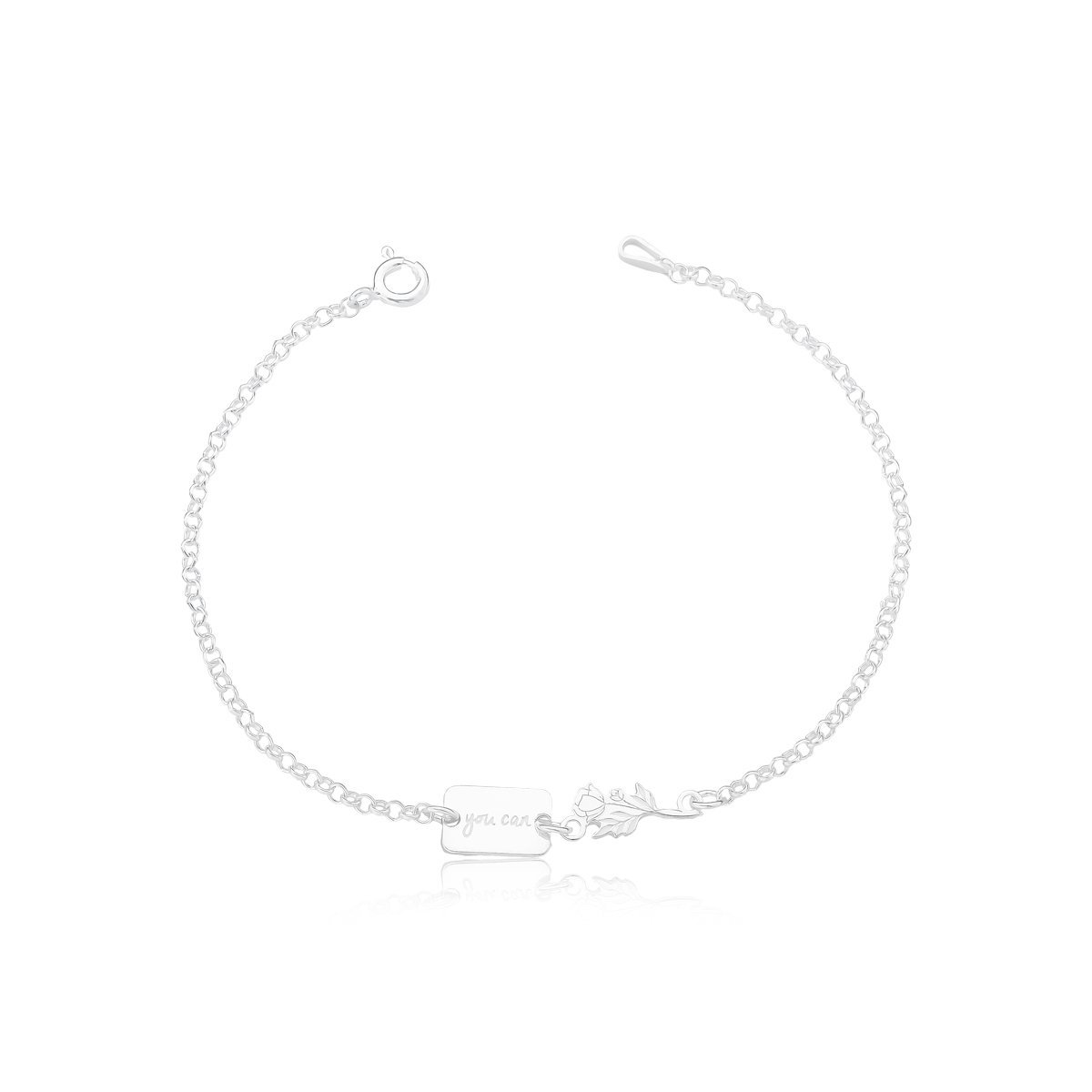 Pulseira You Can (Você Pode) feita em Prata 925, com o detalhe de uma flor minimalista, uma peça inspiradora que emana confiança e determinação. Esta pulseira combina estilo e significado de forma única.