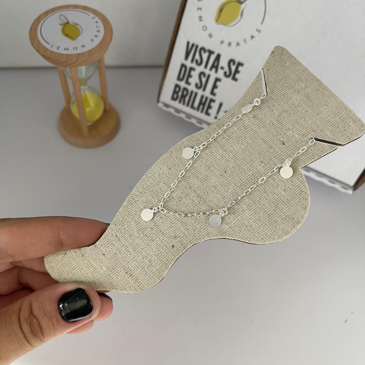 Tornozeleira em Prata 925, com medalhas redondas, dando um toque especial no look.