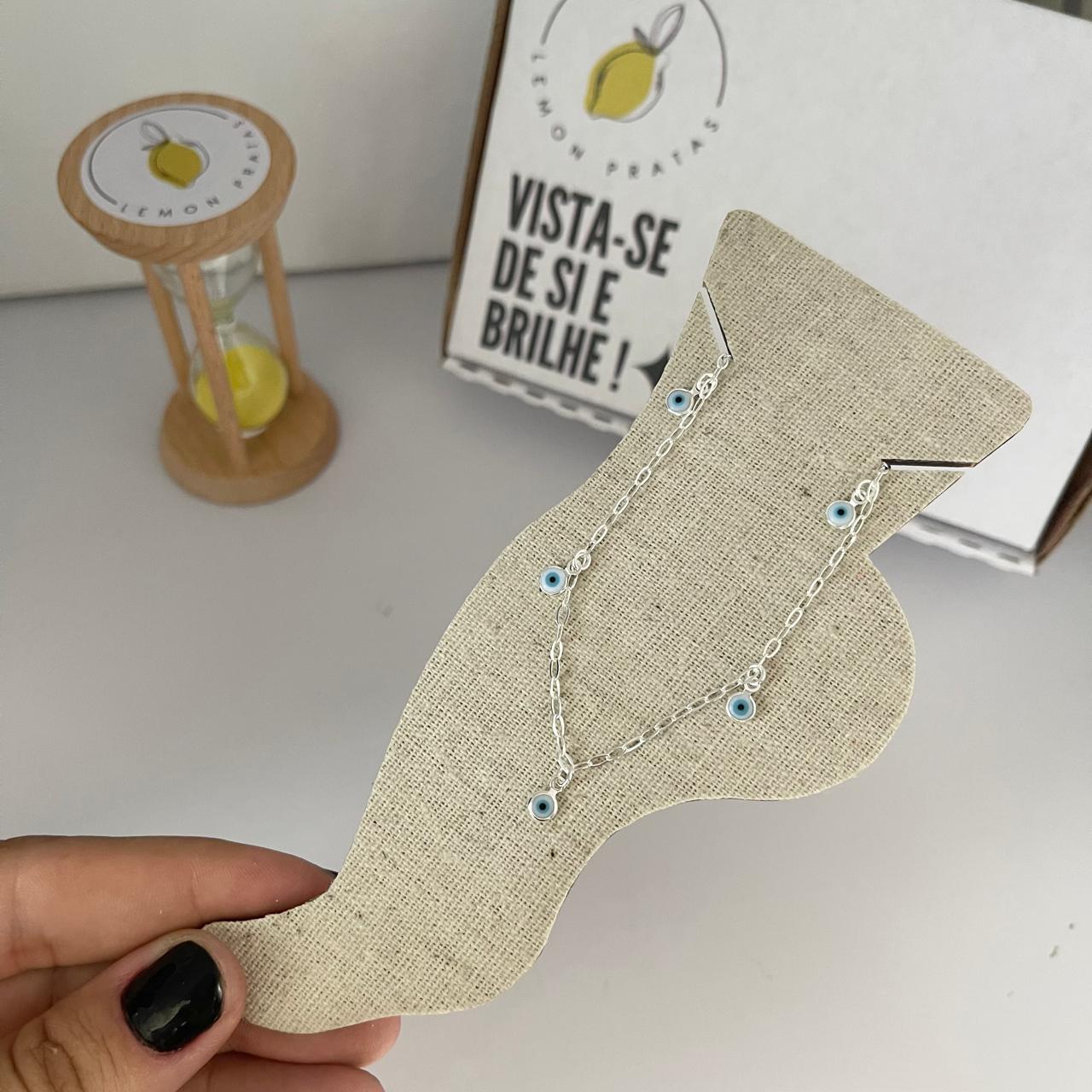Tornozeleira em Prata 925, com pingentes de olho grego, dando um toque especial no look.