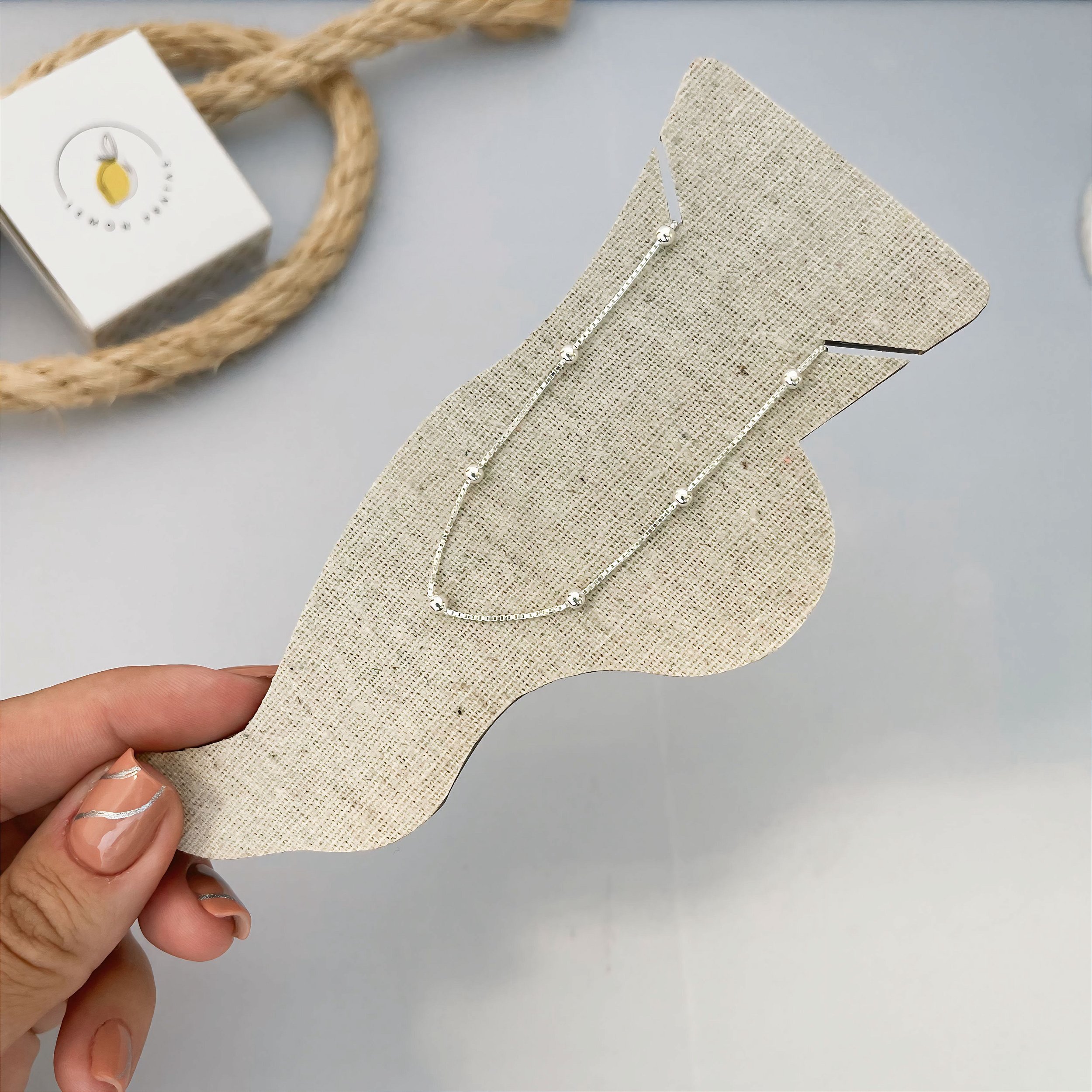 Tornozeleira em Prata 925, com um design de corrente veneziana v15 intercalada por pequenas bolinhas, entregando um visual delicado e moderno. Seu acabamento brilhante tornando-o perfeito para ser usado sozinho ou para ser combinado com outros acessórios.