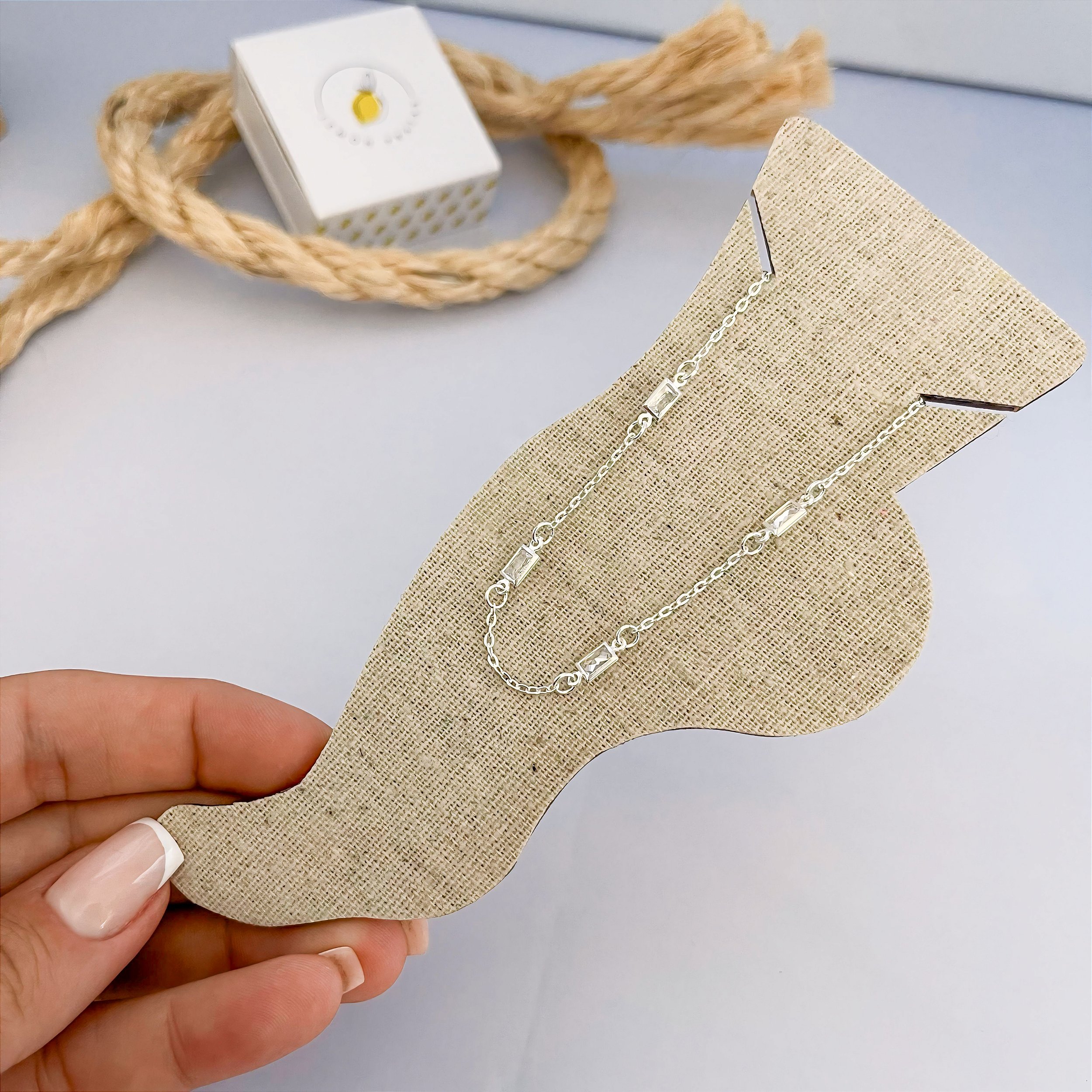Tornozeleira em Prata 925, com zircônias retangulares em cristal é uma peça elegante e versátil, ideal para adicionar um toque de sofisticação ao visual.